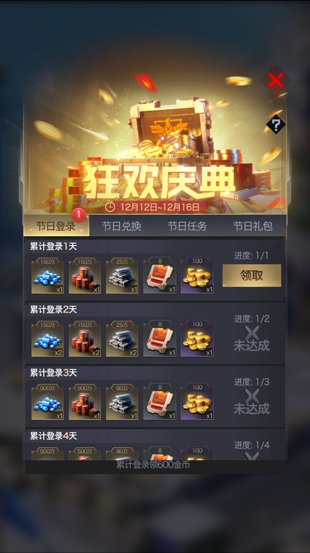 节日登录比较简单,活动期间累计登录即可领取奖励;