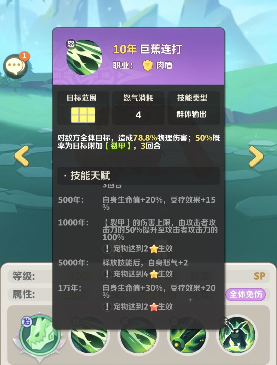 【5000龙骨优先顺序】︰丛林血统-巨蕉连打-蕉皮攻击-野性呼唤。
