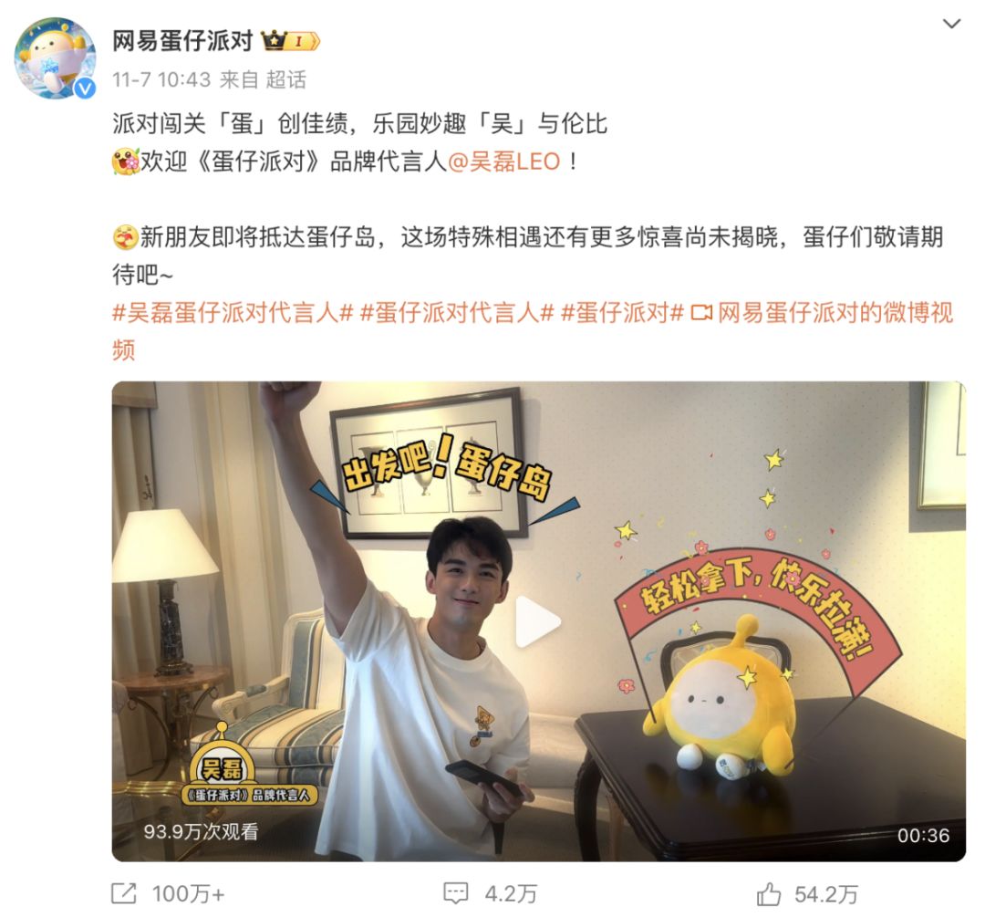 11月7日,《蛋仔派对》官宣首位品牌代言人吴磊。