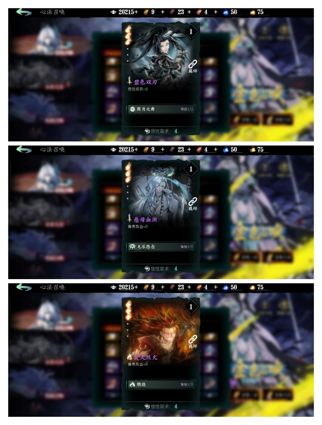 碧色 慈母 火娃 属于紫卡 攻击力都一样 可空放 增加属性面板(多卡建议直接拉满)