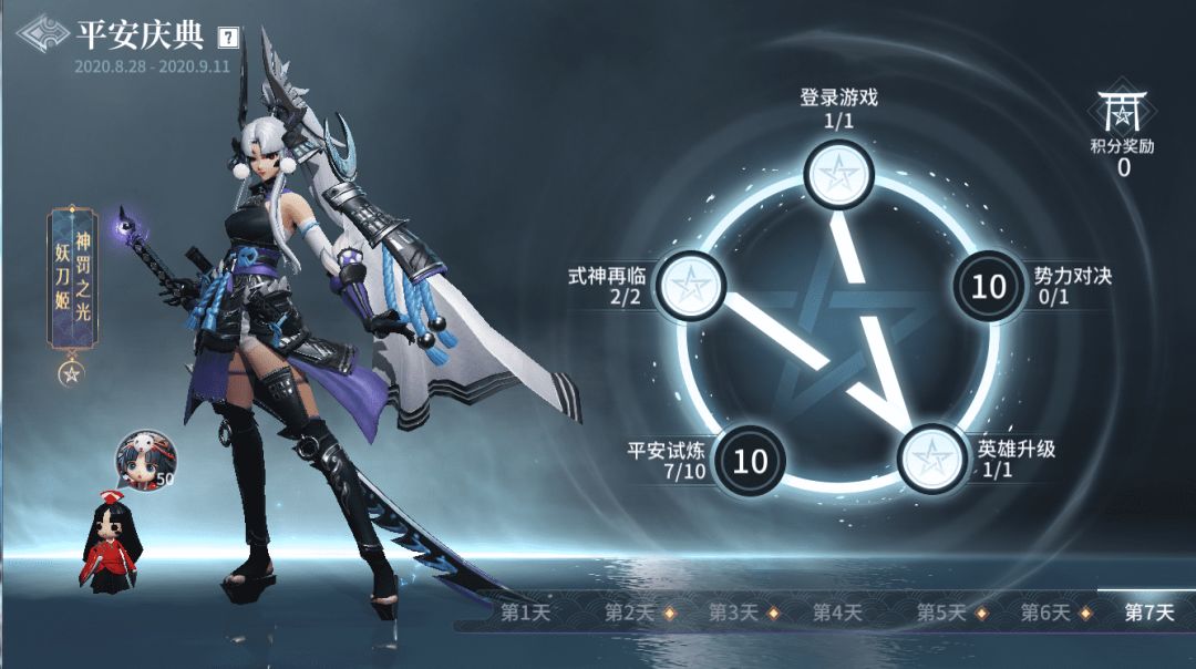 要想成功召唤SSR式神妖刀姬,猎手只需在七日内完成活动的每日任务即可。每个任务完成后可以获得平安积分,全部做完总共可获得420分即送限定头像框。积分达到60、120、180、240、300、360,420阶段时分别可以获得50个妖刀姬碎片,只要集齐300个碎片就可以直接免费兑换联动式神“妖刀姬-神罚之光”。