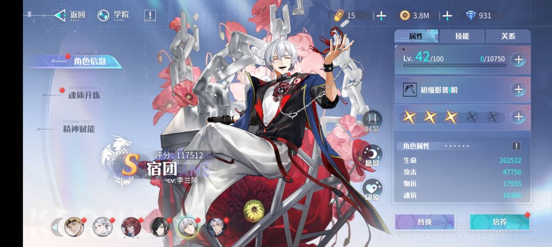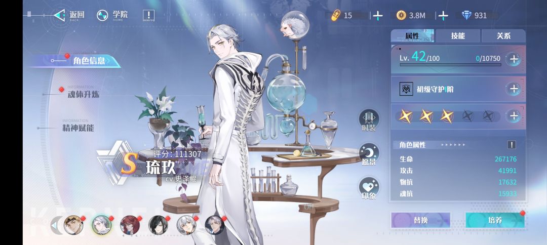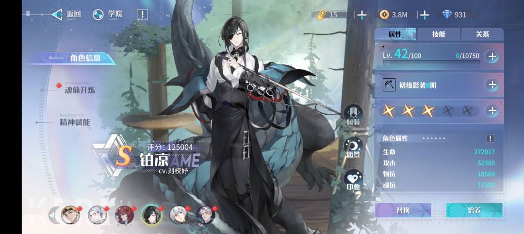第二层:重难点考核,对手是观察眼+合欢,我上的是经典组合琉玖和铂凉,这关难点是观察眼降低攻击和合欢回血,一口回血19w我真的是geichbwksucnfiw……精神赋能带的分别是减伤湛空和增伤的融雪,这关秘术一定要带精神之链,能让对面减防,还能两回合内避免合欢回血。