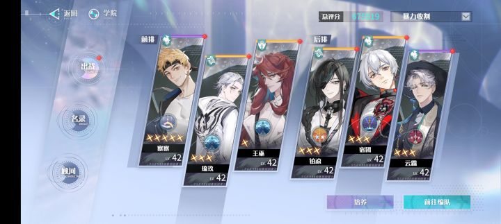 第三层:这层敌方是宿团,须弥芥还有一个我忘了。随便打的。因为没想到一次就过关了所以随手上的盾奶输出组合,意外发现王巫配云霖非常非常好用,比须弥芥还好用,只要王巫在自己开大之前活下来,其他交给云霖和宿团。秘术也是随便配的,承载之言+初梦之皿+万象之音