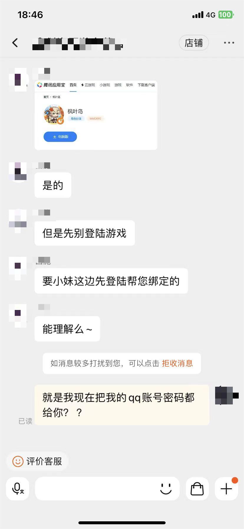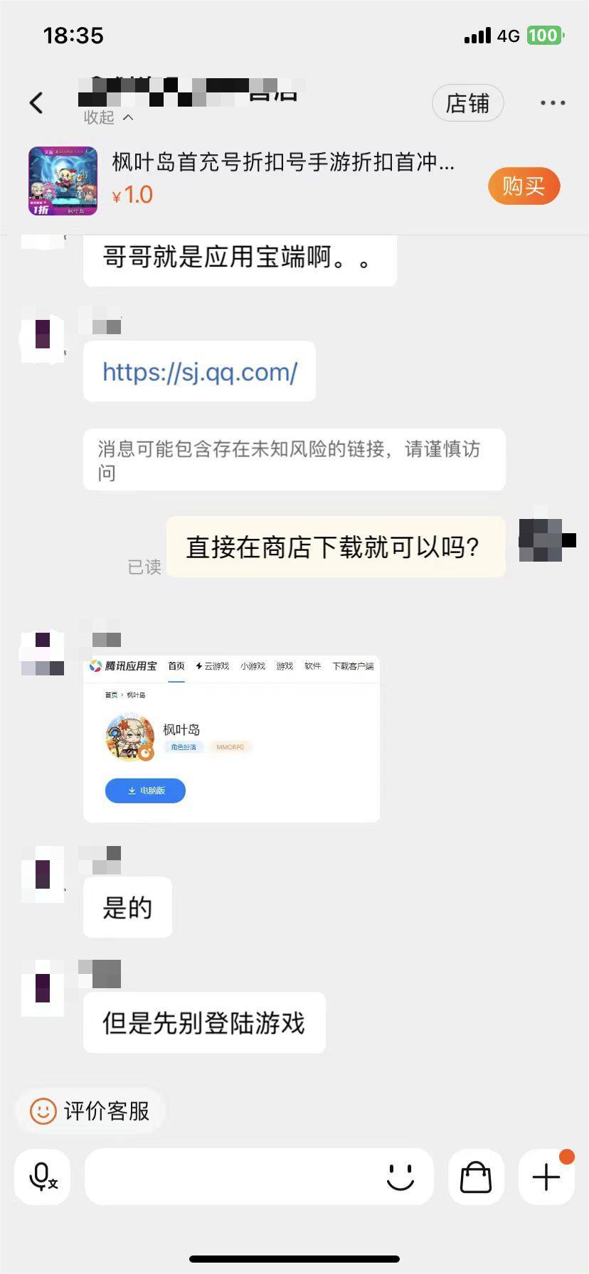最近客服小姐姐们收到了不少冒险家反馈在某宝某鱼上有官方折扣的店铺。米娜秉着公正廉洁的精神与态度,悄咪咪的联系到了一家声称官方折扣的渠道。以下是和店铺的聊天记录,相信头脑聪慧的冒险家一定能看出端倪。