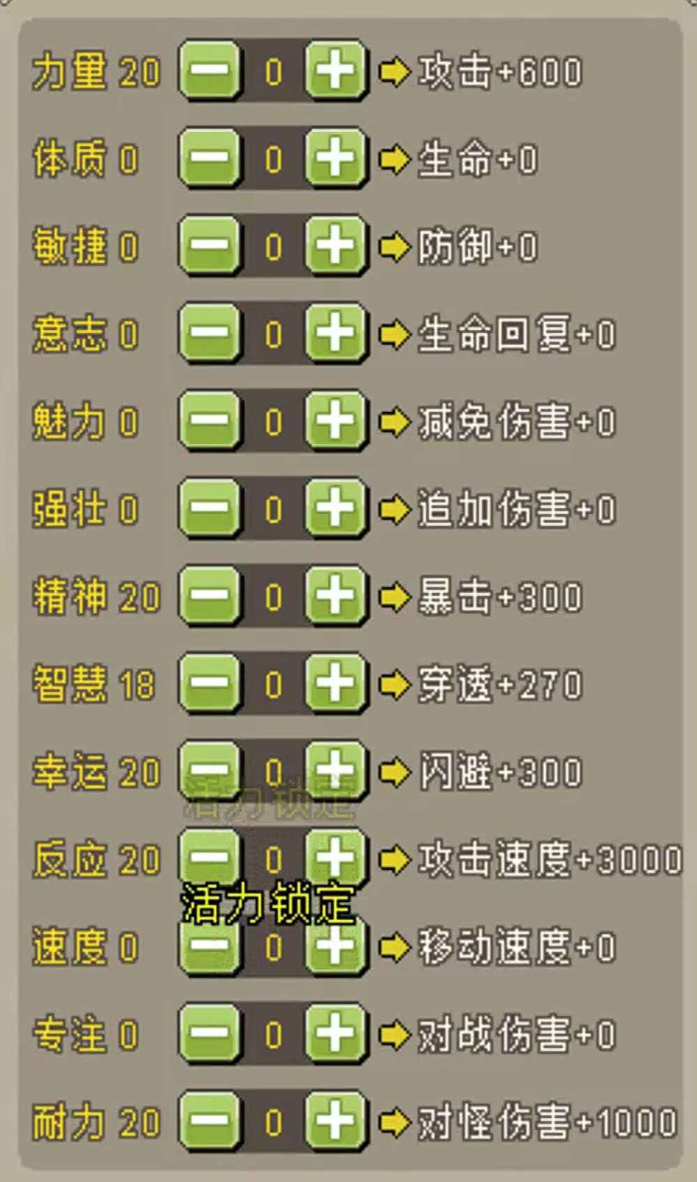 100级以后加点:反应>耐力>力量>幸运>暴击>穿透>强壮
