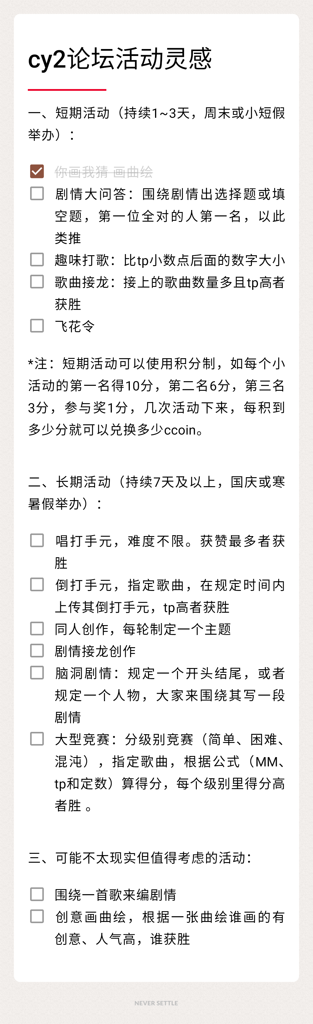 下图是我们小组已经想到的活动,大家可以作为参考~