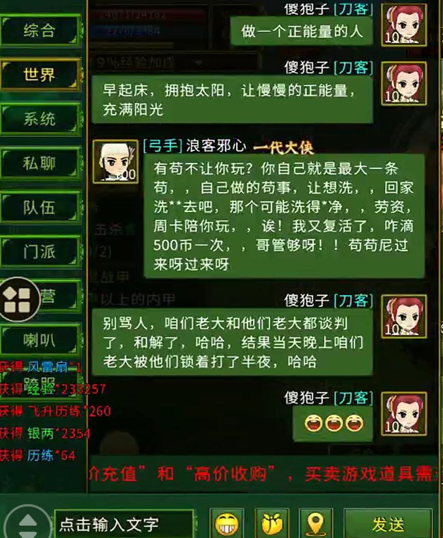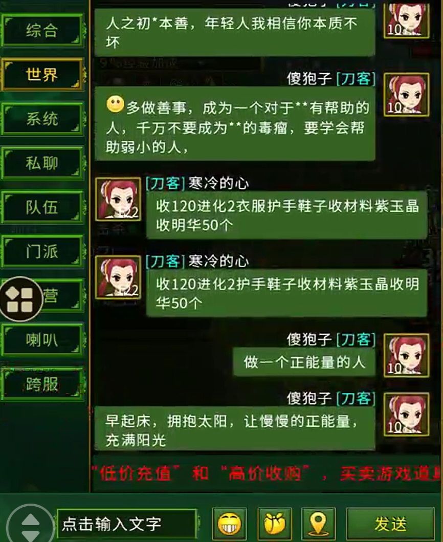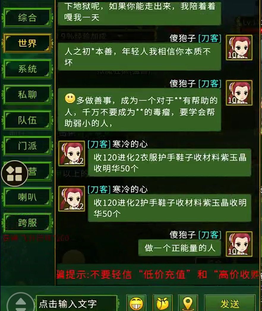 目前各区依然存在部分玩家恶意清号行为,目前大部分玩家依然挂在危险区,因为危险区经验高,有部分玩家恶意清号,造成咱俩流失,建议对于恶意清号的账号进行严厉的处理,或更改机制,危险区和安全区经验一致,江湖币爆率可以上调部分,毕竟是挂机游戏,所有咱俩都以挂机升级为目标,脱离了挂机升级,对于游戏体验感会降低,建议恶意对于恶意清号的账号进行永久封存