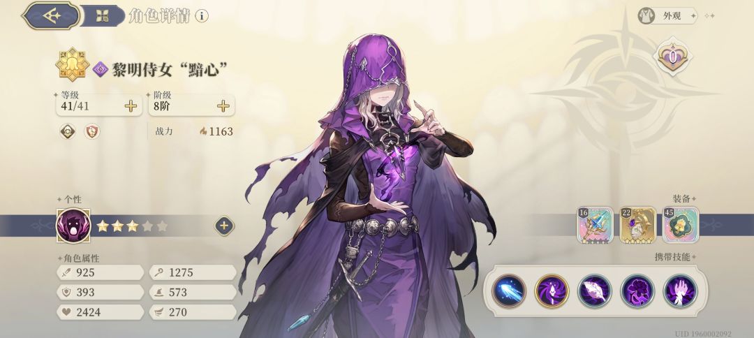 黯心(贝拉):上debuff的神器,还有着高魔抗能抗点名。没有贝拉必带,有贝拉这个位置可以考虑换个物理输出,因为在练度低的情况下破盾压力确实有些的大。