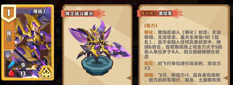 在奇兵三国中,将士的待机值往往与攻击生命成正比,将士拥有越强大的数值与技能,待机值会越高。今天星酱要来介绍的传说将士却不一样,他拥有全游戏最高的数值身材,待机值还是最低的1费,他就是:在5000杯可解锁,数值最强飞行单位,善阵巧变,擒敌先锋:张郃