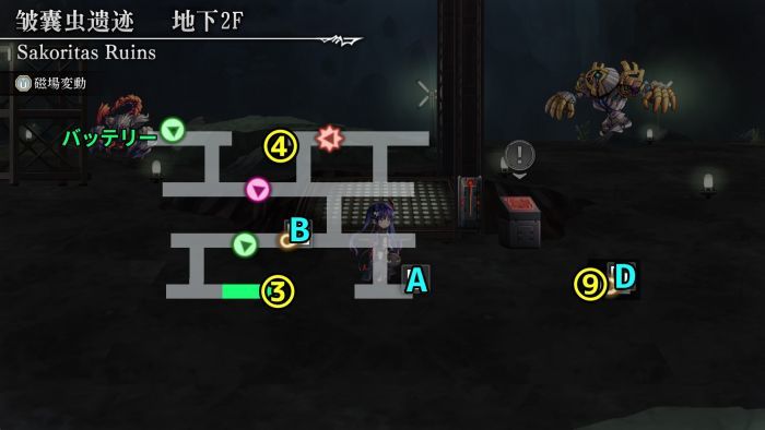 2、在地图左上方获得“大型电池”,在地图中部的“B口”启动电梯,进入“地下3F西”。