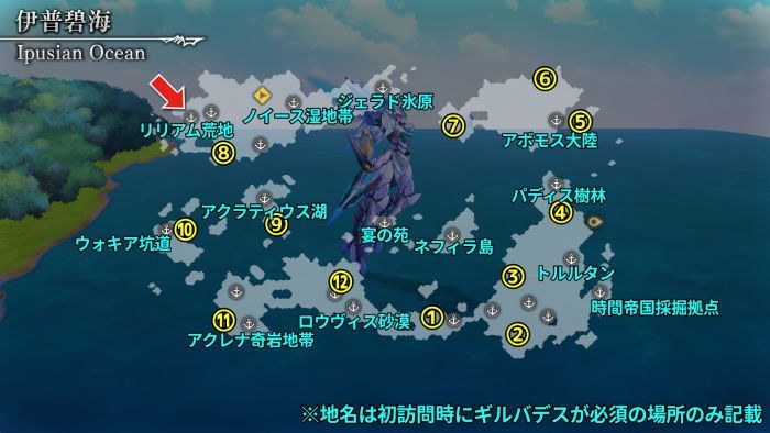 1、乘坐载具“罪恶冥神”从大地图或从“力厉亚姆荒地”地图右下方进入“晓之塔 图里亚尔瓦”。