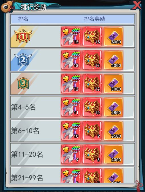二、排名奖励系统会根据玩家登顶排名进行奖励,排名越高奖励越多,排名第一的玩家能够获得:荣誉点、传说法宝盒,SSS灵翼碎片奖励!