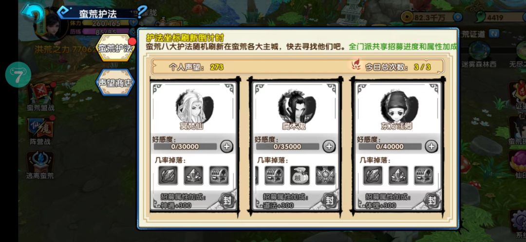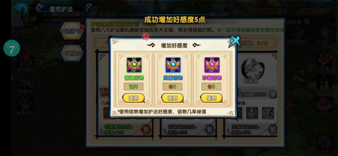 以上就是我们的蛮荒护法招募属性加成与护法好感度增加方法了,别忘记了每天挑战三次护法,感兴趣的小伙伴留言回复,会加更哒。
