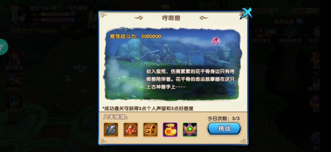 蛮荒护法随机刷新在蛮荒各大主城,门派成员每天有三次挑战机会。全门派共享招募进度和属性加成。