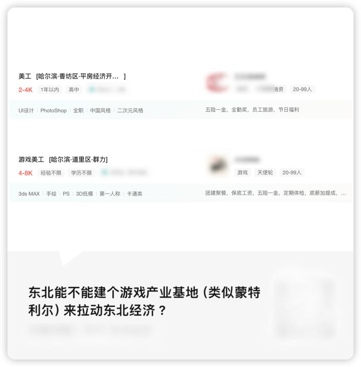 东北有一些美术设计类院校,比如吉林艺术学院、吉林动画、沈阳鲁美,所以东北的美术外包公司不少。近几年有(些)公司,比如祖龙,在长春开设了美术中心,相比美术外包要好很多,慢慢也会带动更多厂进来。毕竟都想吃现成的。