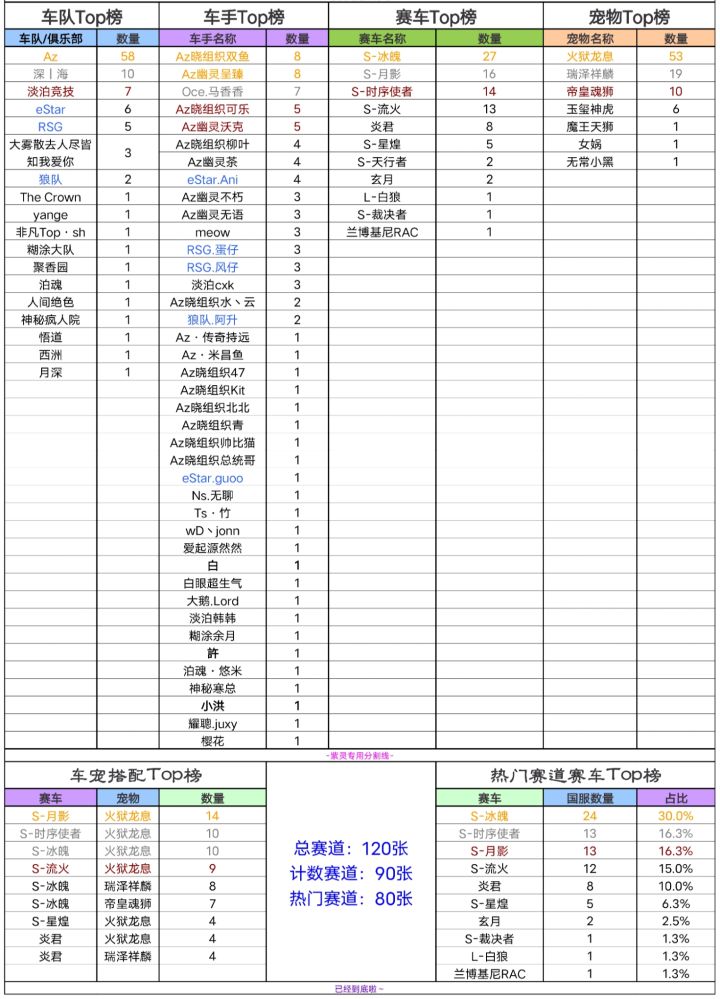 热门赛道大概主要是目前排位的地图,冰魄依旧稳居榜一且摇摇领先与其他车辆 ,估计月影将来想拿下a车老大还有点难度,不过在很多加速带图已经成为机甲般的存在了,当前冰川滑雪场也已经是月影的全服记录了,前几天哈雷特刚破了冰魄的沁园春国服,月影来的也巧,刚好捍卫住了联赛车的荣誉,但不多,因为是个冷门图