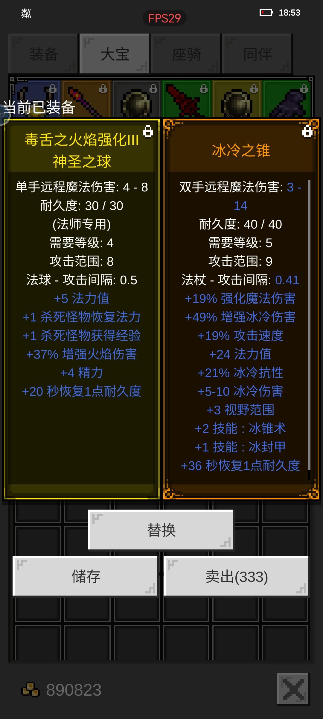 图4是常用的两把法杖,单手法杖通用,双手刷墓穴好用,2级冰雨49冰增强,打墓穴怪200+。(如果我有单手三系增强的话,呜呜呜)