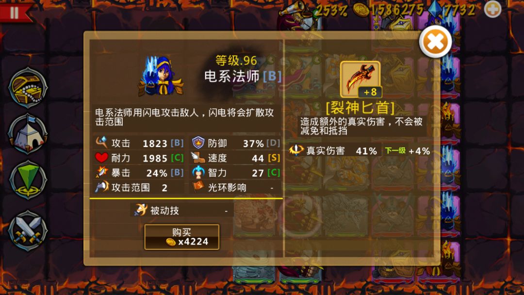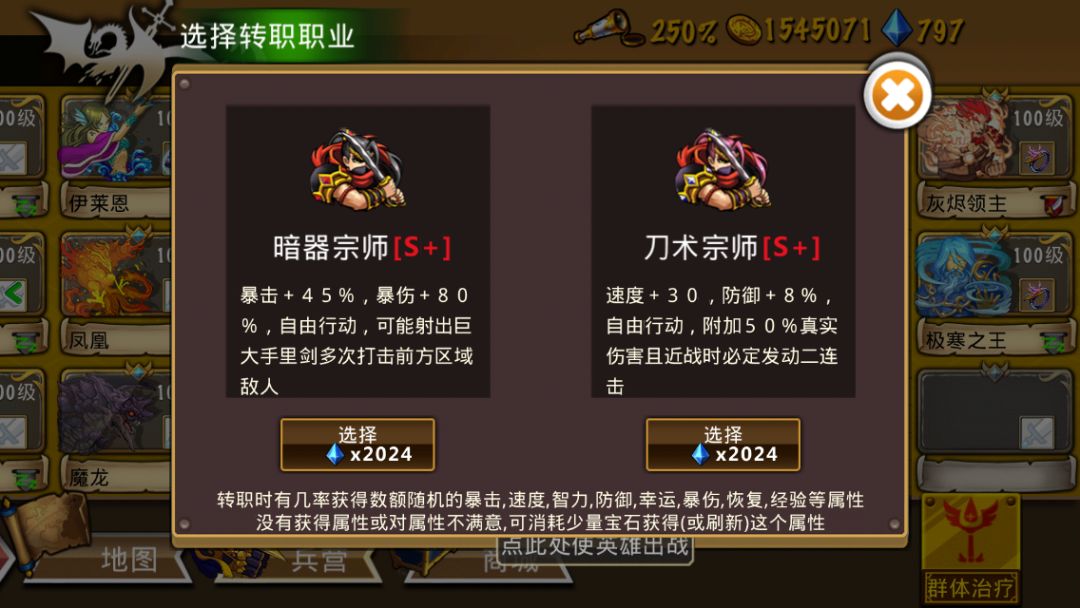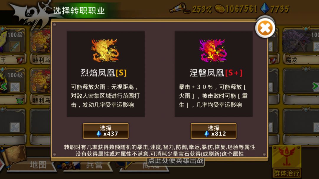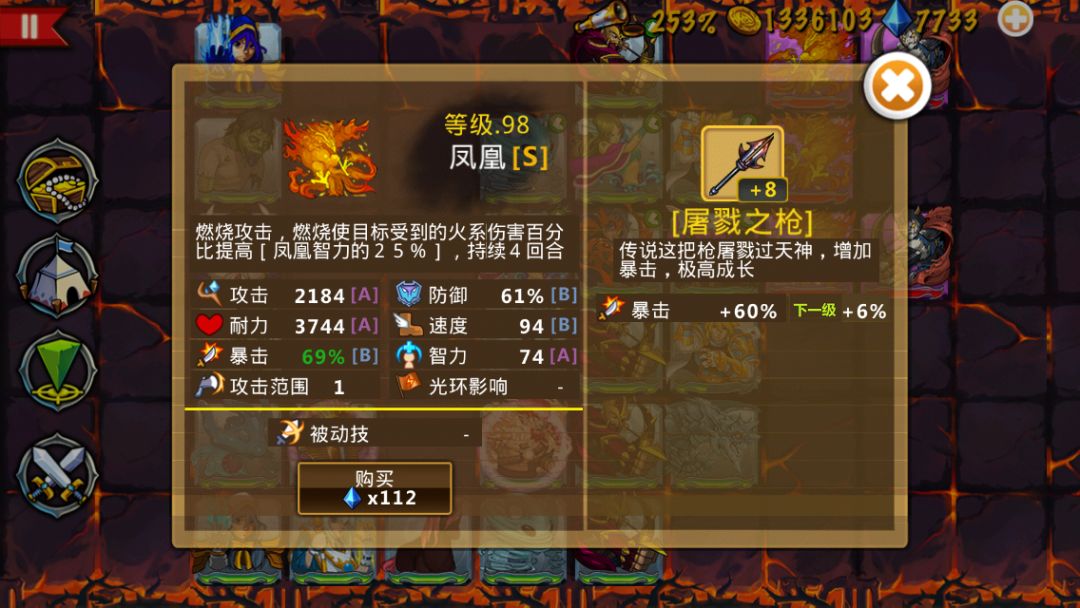 凤凰一二转技能落下火雨攻击随机4个敌人造成两次伤害,一个竖列最多选中两个敌人