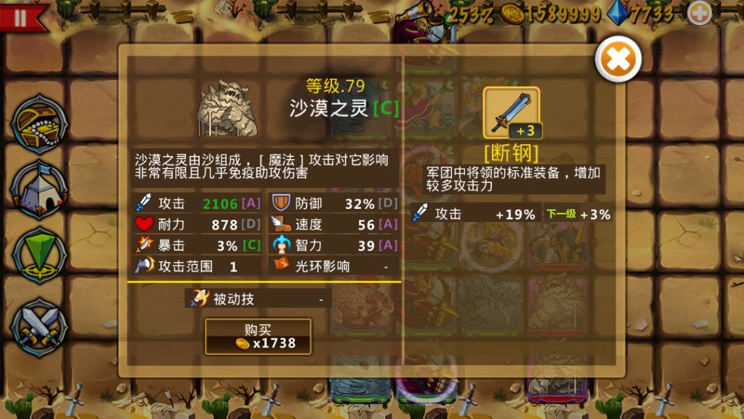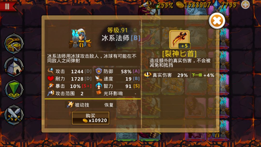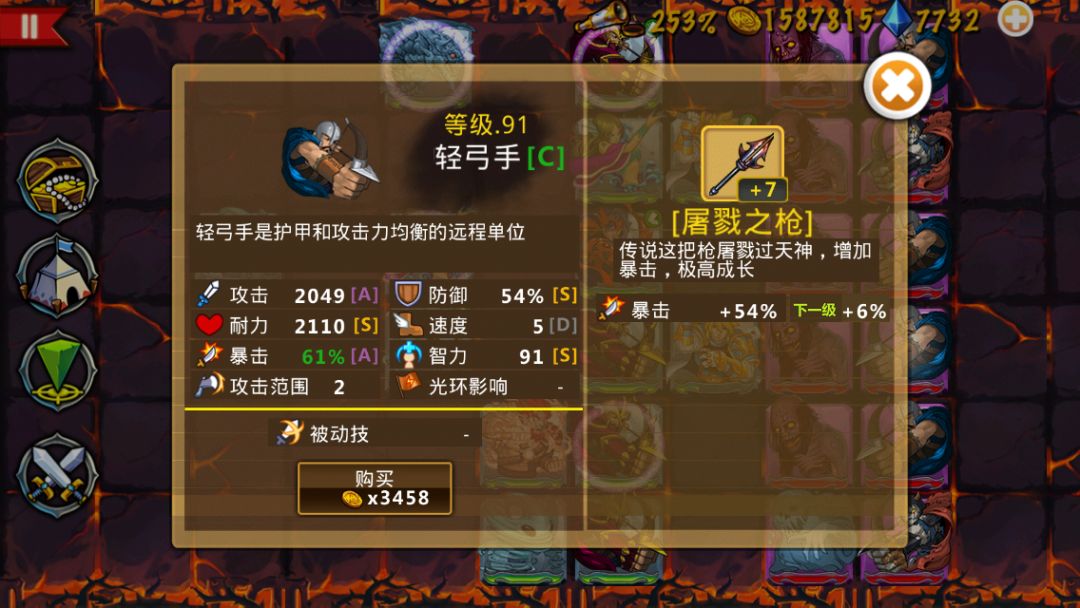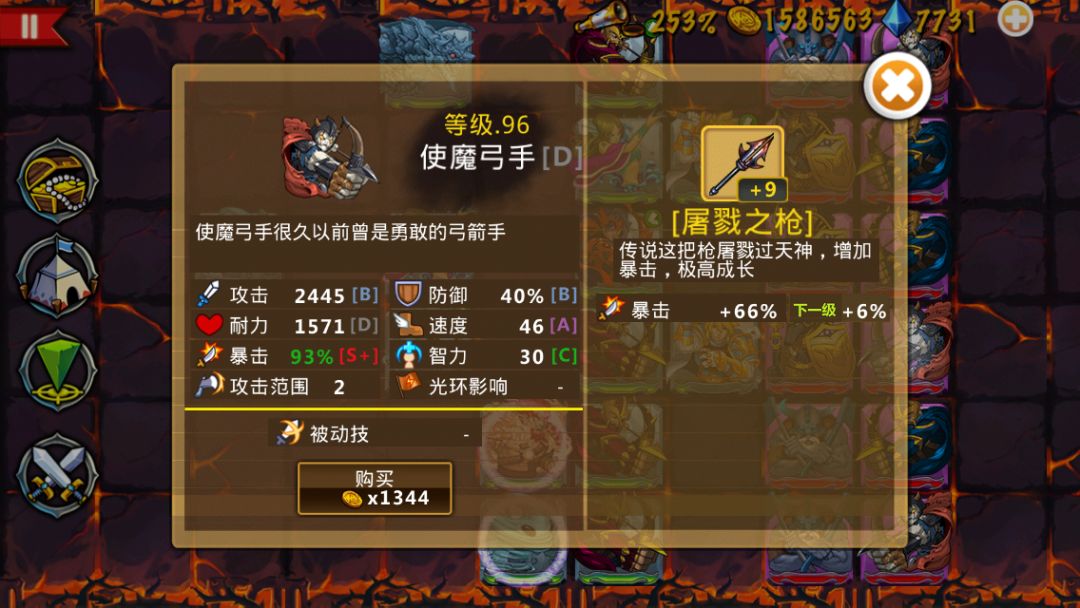 技能是攻击前方2横列X5竖列敌人二转可以加一横列。