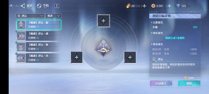 浮云套:适用于护盾类角色,提升护盾,降低护盾存在时受到伤害以及被暴击率。