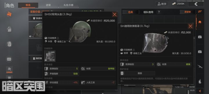 SH50为5级头盔,面罩3级,体验了三把下来,死了三把,爆头这游戏强封被爆头率真高,第一把被80弹穿面罩,第二把被5.56ap弹打中头盔一枪第二枪又穿面罩,第三把也是被5.56的子弹打中头盔一枪,然后被乱雷炸死,只能说头部防护还是挺重要的,至于SH马斯卡2型,声音阻隔实在太严重,几乎对面走到十米二十米才听见