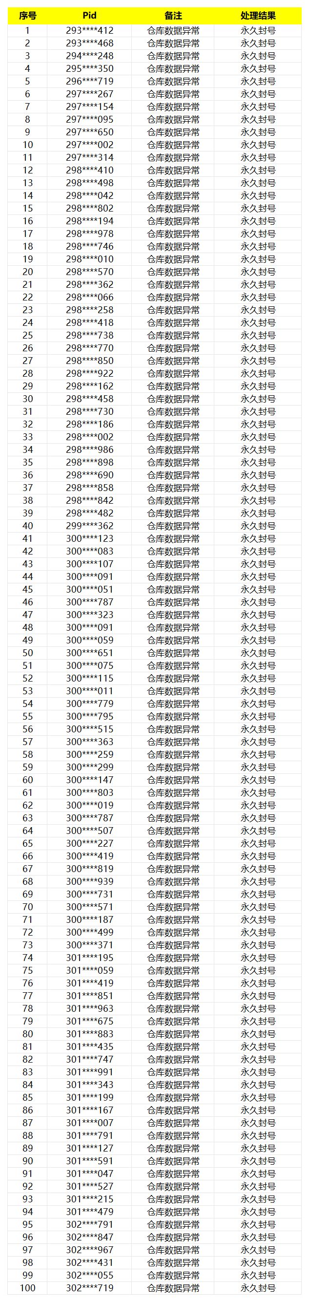 本次行动针对部分渠道账号进行核实,从严查处游戏内数据异常行为,市政工已收集了相关违规账号信息,并对这些玩家进行了永久封号处理,将于此公告中予以公示。