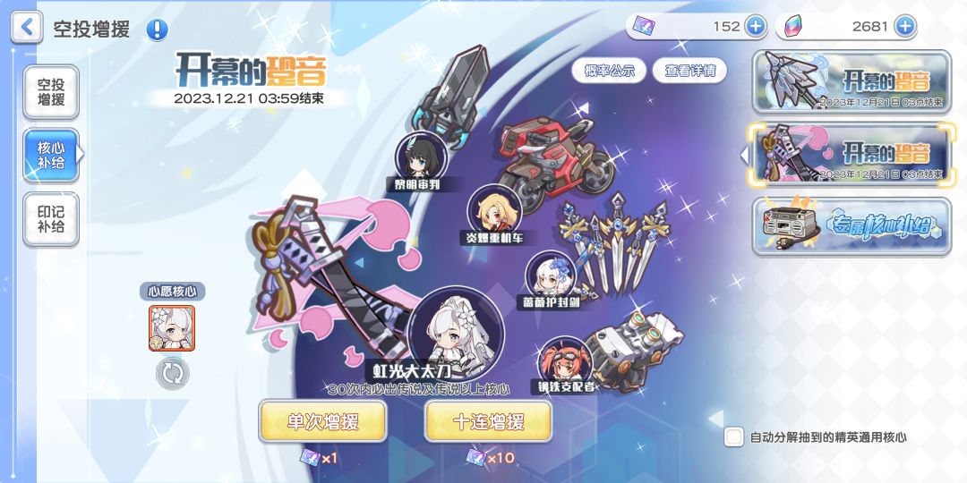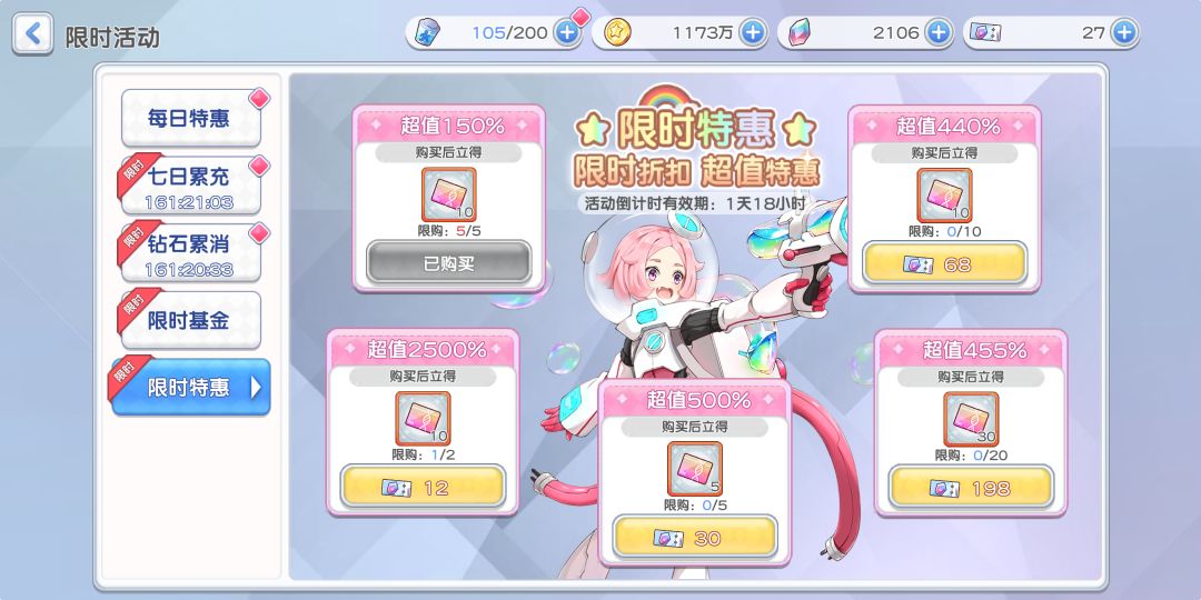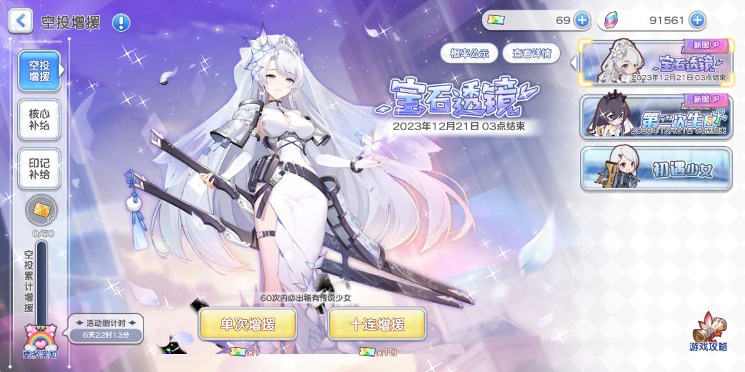 另外,大家抽完无瑕后记得去升各个少女的突破,领完“作战目标”里的钻石再去抽一波。在池子持续的一周中,积累好钻石多抽无瑕,毕竟限时池是出货最好的地方了,没有之一。
