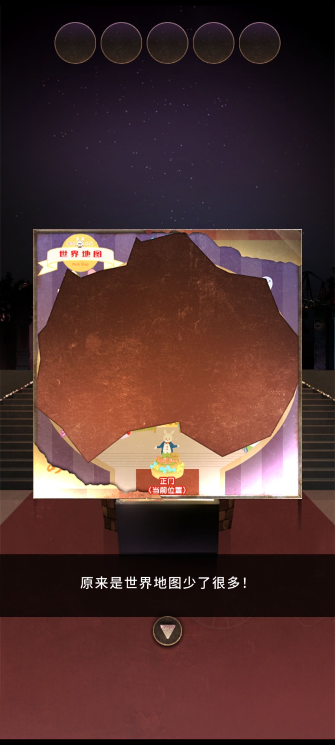 打开地图后,我们会发现地图上的游乐区域都消失了,只要找回这些碎片放进去,游乐场应该就会亮起来吧!