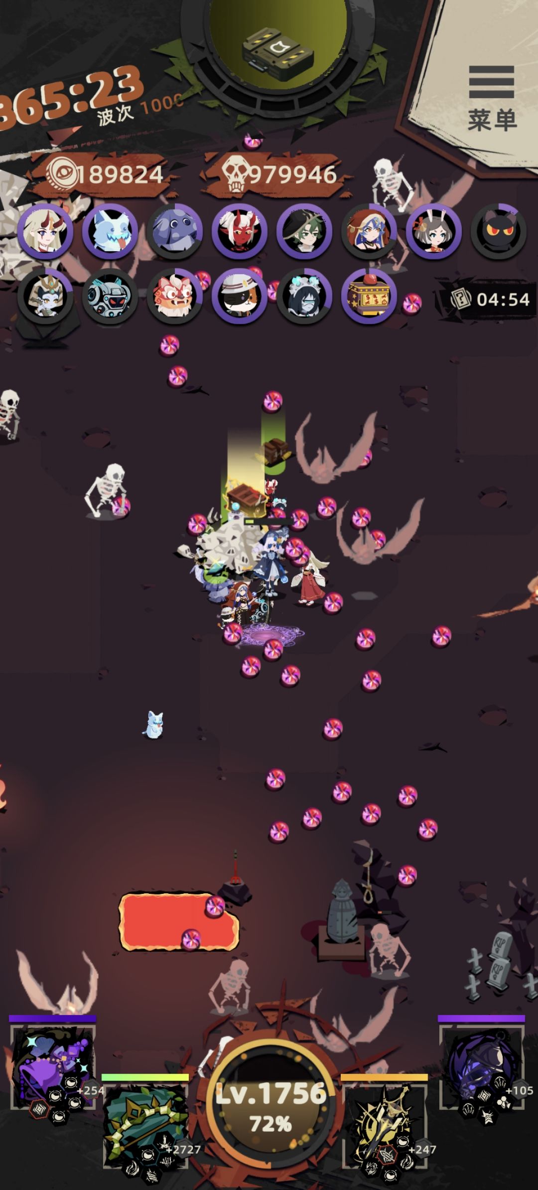 怪总体强度的增长速度大于人物增长速度,所以阵容配齐后就需要全力升主武器伤害,除了必要技能外,升级的技能点全部给主力武器,副武器技能只靠开箱子获得。