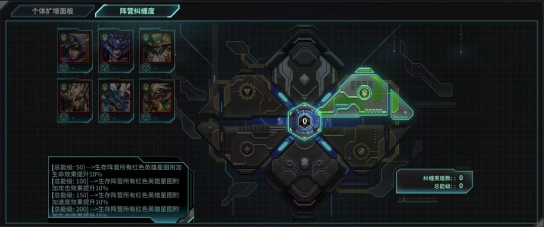 星图共分为个体扩增面板和阵营纠缠度两个部分,只有红卡英雄才能激活星图