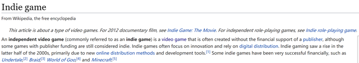 游戏界对“独立游戏”的定位是:没有接受经济支持或者“发行商”资助,而独立开发的游戏。当然,其中也有一些接受了“发行商”资助的游戏依然被当做是独立游戏。