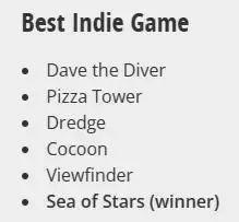 至于《潜水员戴夫》为什么会被提名最佳独立游戏,客观来讲,或许并非都是TGA的问题。毕竟2023金摇杆奖的“最佳独立游戏”也提名了《潜水员戴夫》,只不过最后得奖的是《星之海》。