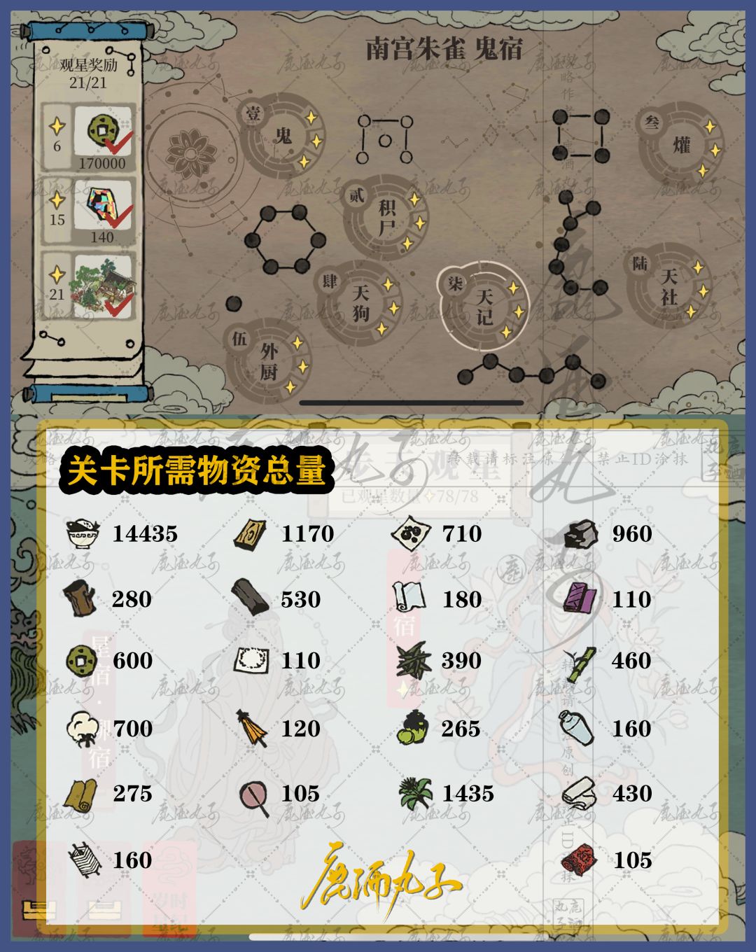 🌿鬼宿关卡所需物资:
