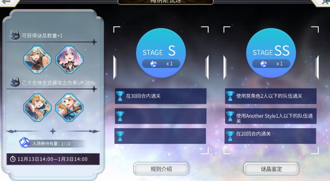 完成以下条件,通关时谜晶数量+2