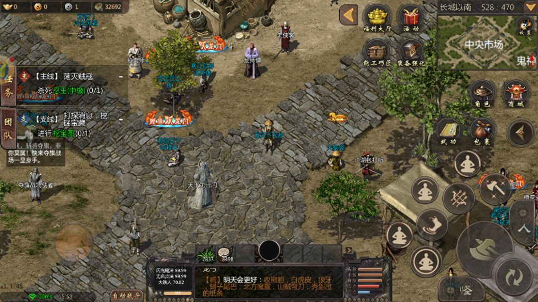 千年微变版手游独具特色的玩法就是“搬砖”,搬砖是一种轻松有趣的玩法,游戏消耗大量时间,适合空闲时间较多的人玩,当然,零氪玩家在玩游戏的时候还能赚点米也是很不错的体验。千年的游戏主体思路十分通俗易懂的,简单来说就是开局装备好武功和武器装备后去野外挂机砍牛砍马或者砍犀牛等怪物,击杀这些怪物后会随机获得装备和材料。