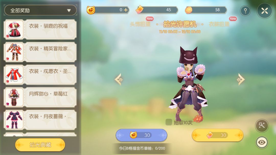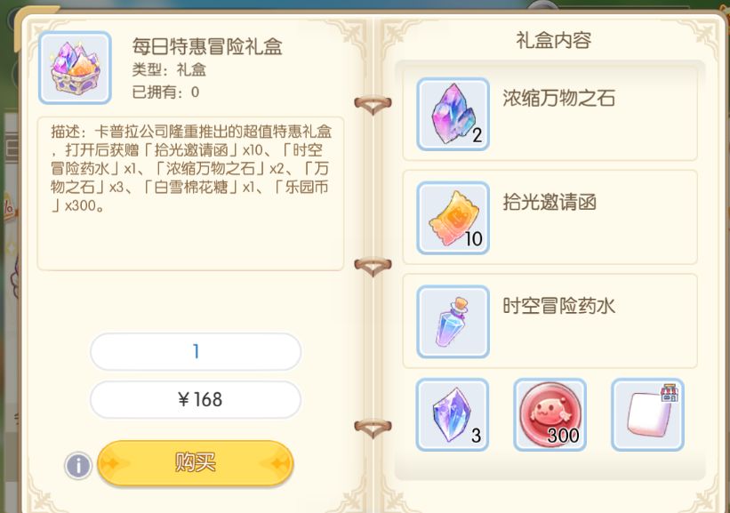 每天可以获得10张时光票,一个月就有310张,意思可以抽10次时光机。如果你直接抽拾光许愿机需要30猫币抽一次,10次就是要300猫币了,那是不是很划算?对于新手来说,补存入1%,这个要比直接扭蛋头饰划算多了,而且还有冒险药水,棉花糖送。10次如果按照正常的,大概30多个币左右,但是呢,一般情况下,如果好多头饰不齐全的情况下,抽时光机基本都是出头饰那些,到满的时候才会抽币。