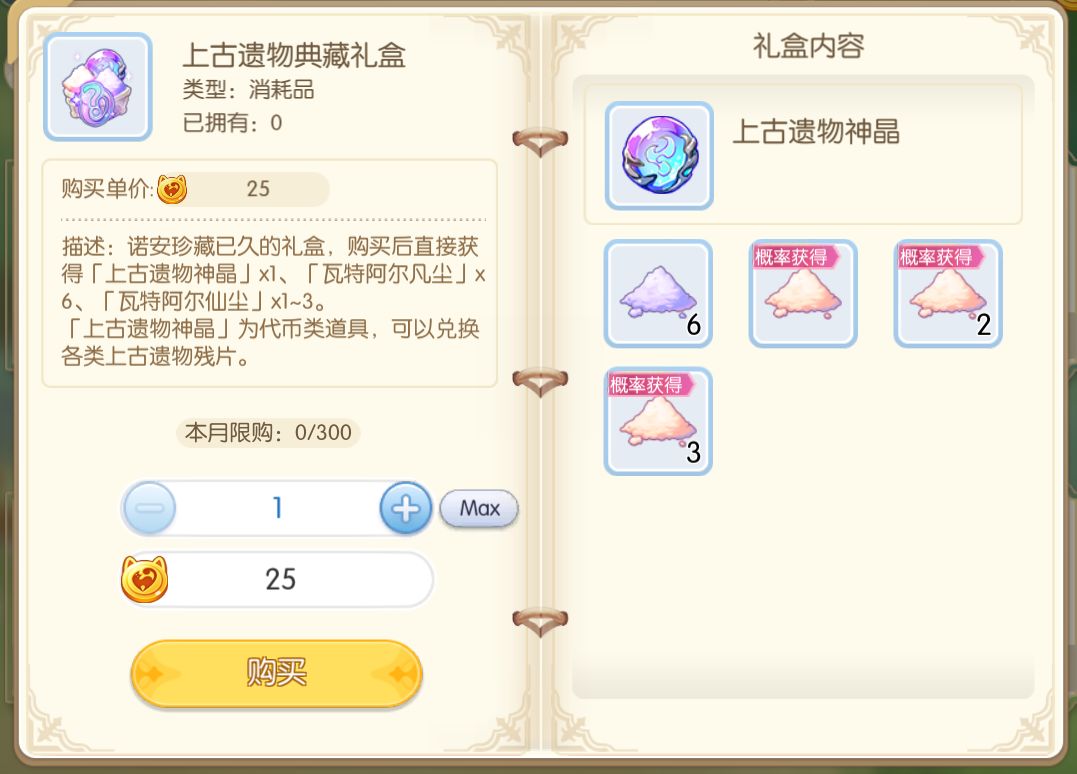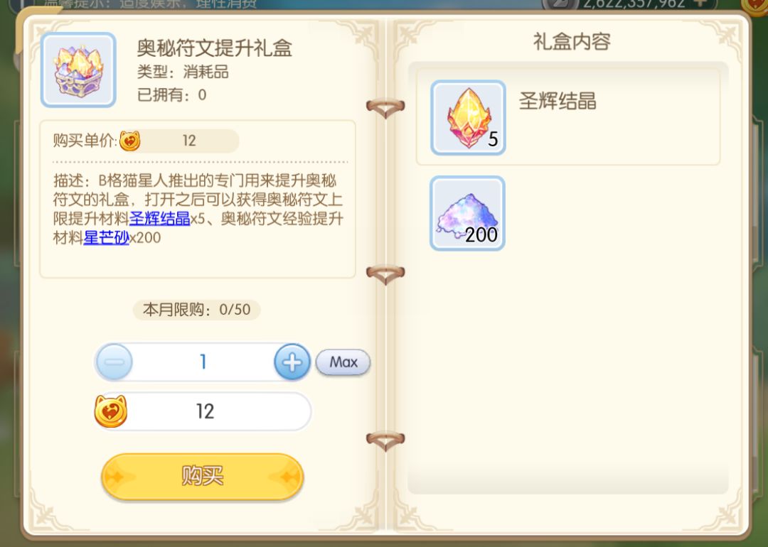 这个礼包要比单买10个要划算很多,如果想做遗物,又想省钱,每个月买一个198的礼包,之前猫币10倍特价的时候就超级实惠,基本上200多rmb就可以氪到一个灵脉出,一般都是为了快速获得尘,这个已经是后话。