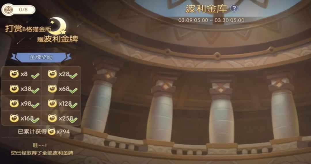 波利金库活动相当于双倍充值猫币活动,运气好的话,可以拉到6倍的效果