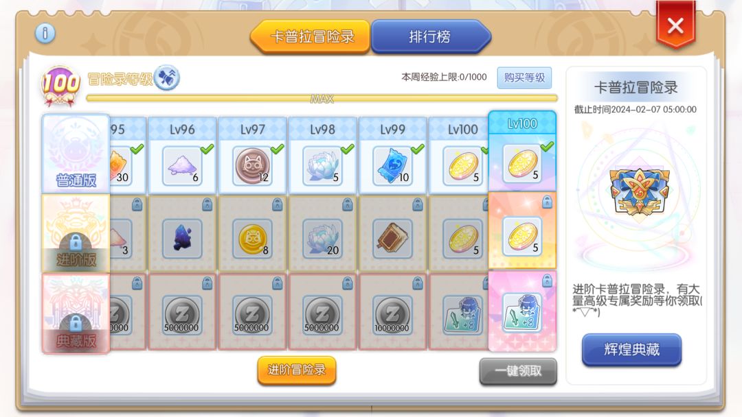 这个冒险录收益很不错,对于新手老手,基本都很多人会购买,S符文和星符文要比普通版的多,还有时装券,时装兑换币,建议买进阶版即可,典藏版不需要。