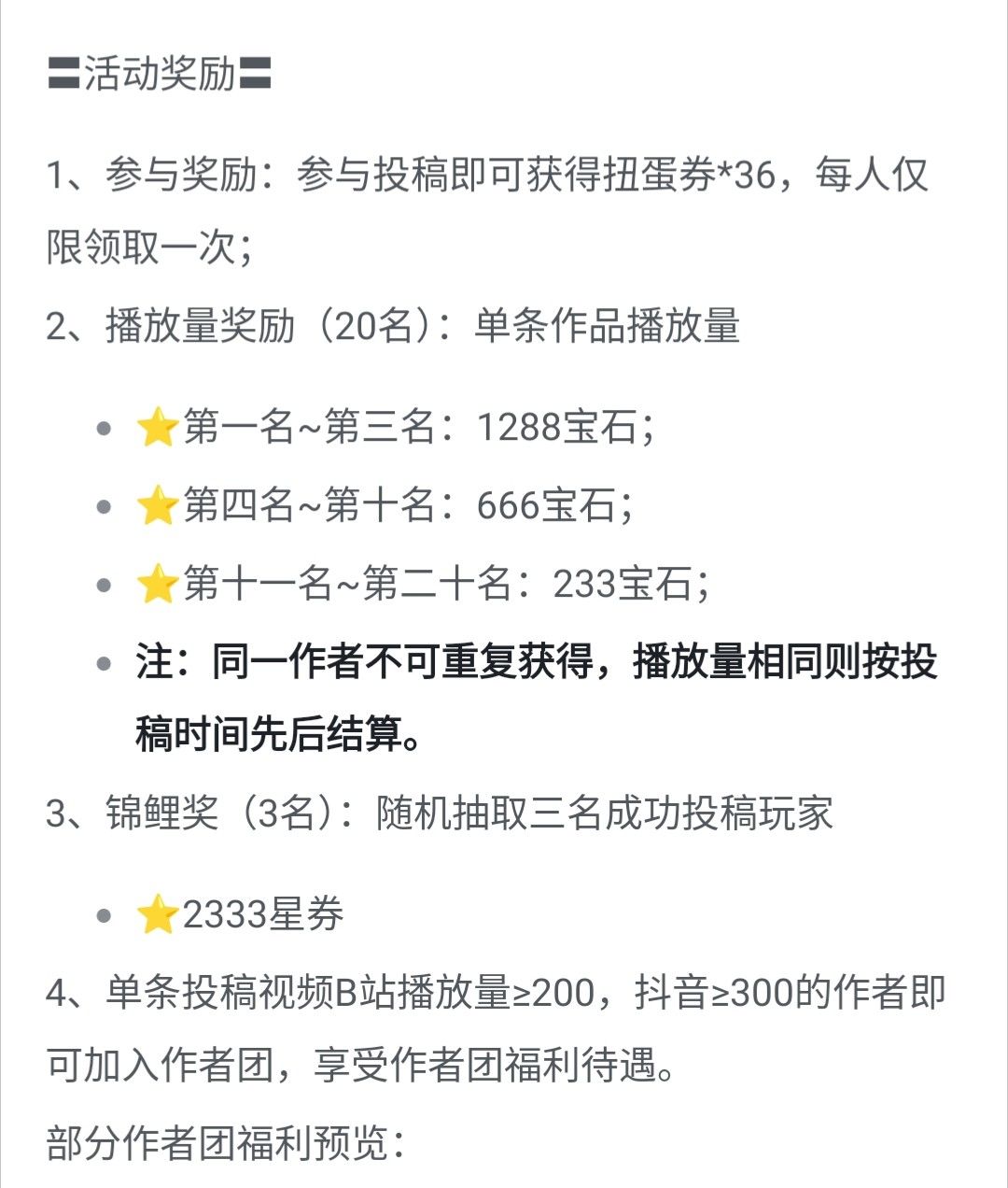 众所周知,官方每个月都有一期创作者激励活动。本来的意图就是在玩家中选取一些优质作者的作品,值得观看且呼声比较高的,在领取奖励的同时,有机会进入火力苏打创作者群。