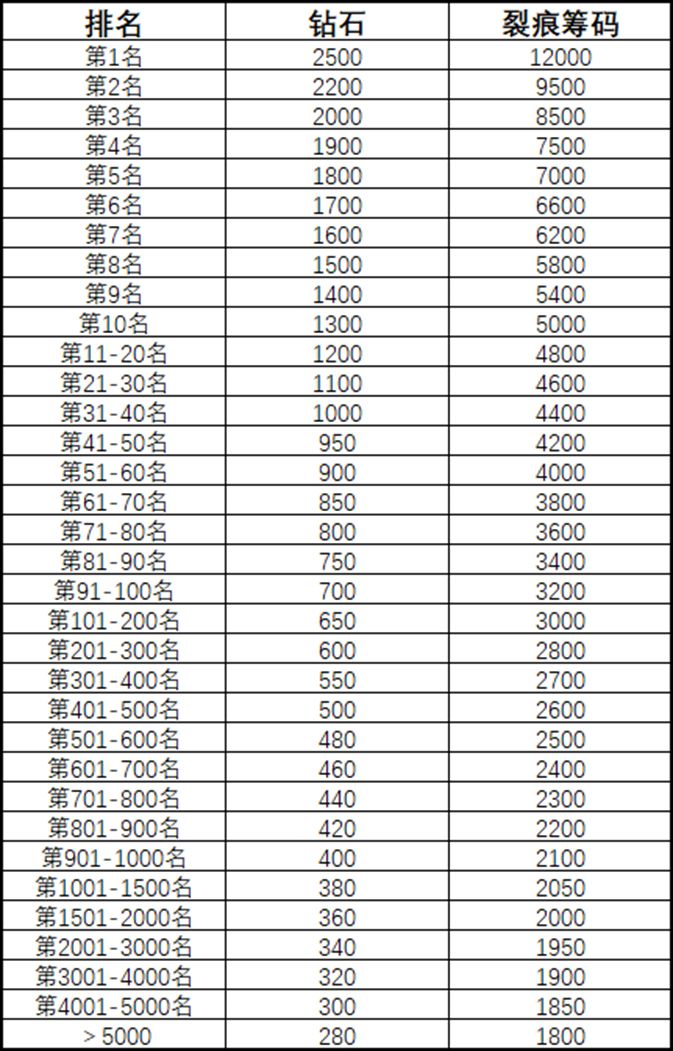 裂痕的排名奖励、每日任务奖励将改为新增的货币(货币会在活动结束后清空,请大家及时兑换).
