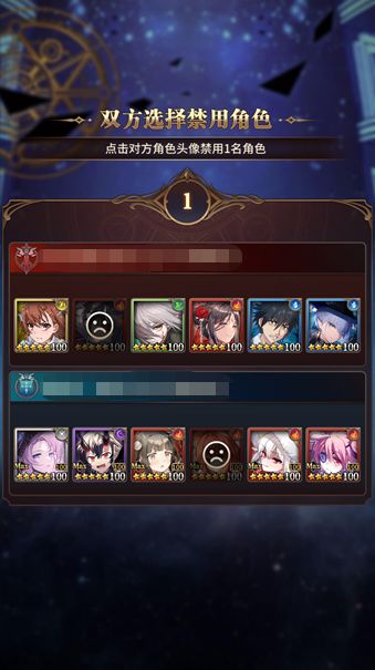 双方6名角色确定之后,将各自禁用1名对方的队员(只有双方均禁用完毕之后才可以看到禁用情况)