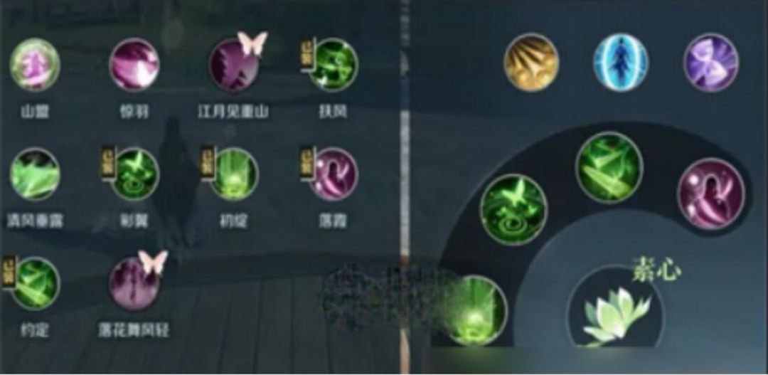 我选择用技能携带,流派技能,我推荐的搭配,惊鸿、灵犀、星落,百鸟,其实现在不用花间了,风系流派技能都能触发该技能。群侠姬蜜儿没升阶的话可以用打虎百家技能,心锋乾坤刃,会心低的话也可以上心眼。绝技优先剑破,那就会换红莲了,有满阶万剑也可以用。我自己喜欢图片里面这一套搭配方式,如果你喜欢的就可以搭配,这方面还是看自己账号情况来决定更好,