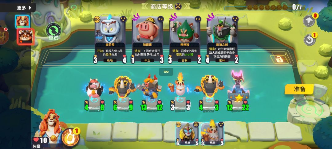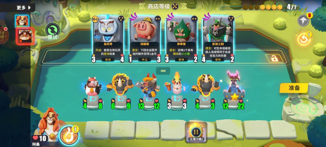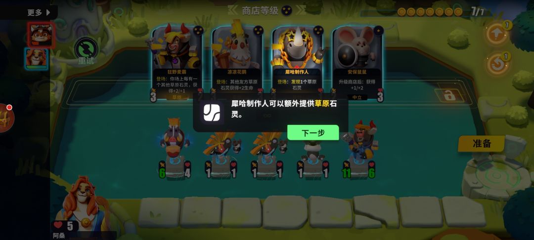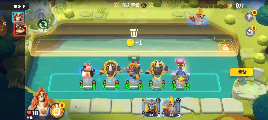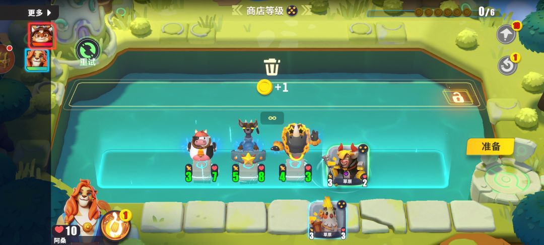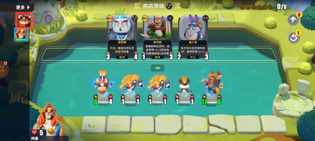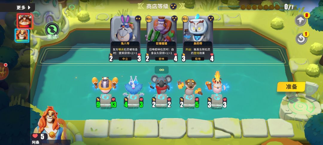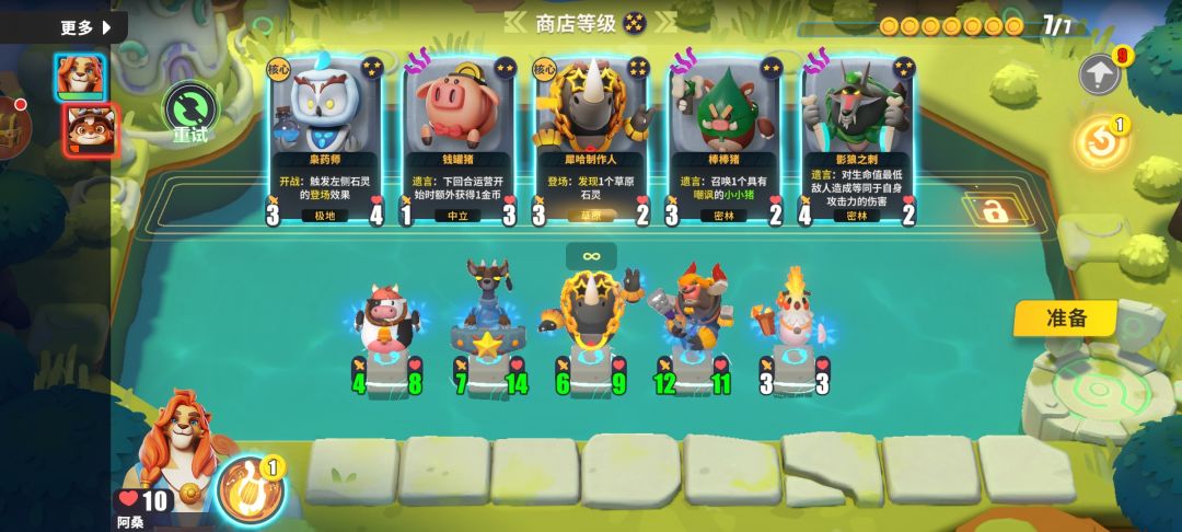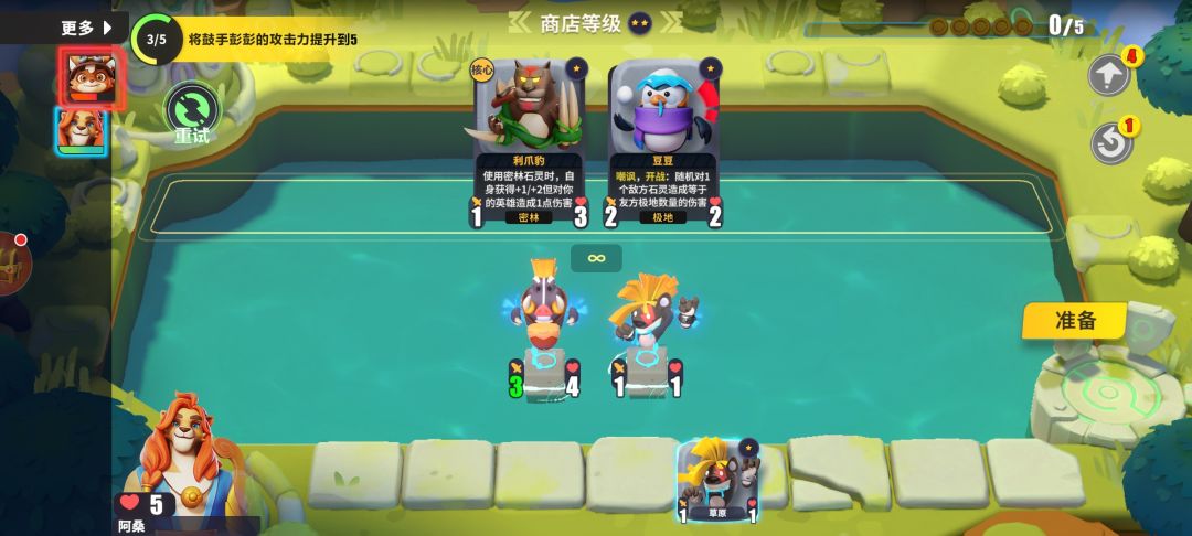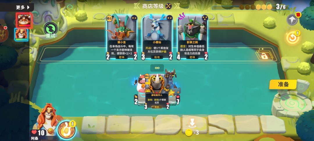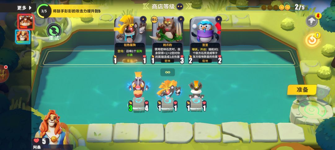 此关卡商店刷新不固定,刷新寻找草原阵营石灵即可轻松过关。战斗区优先出售冰狐先锋,小考拉。