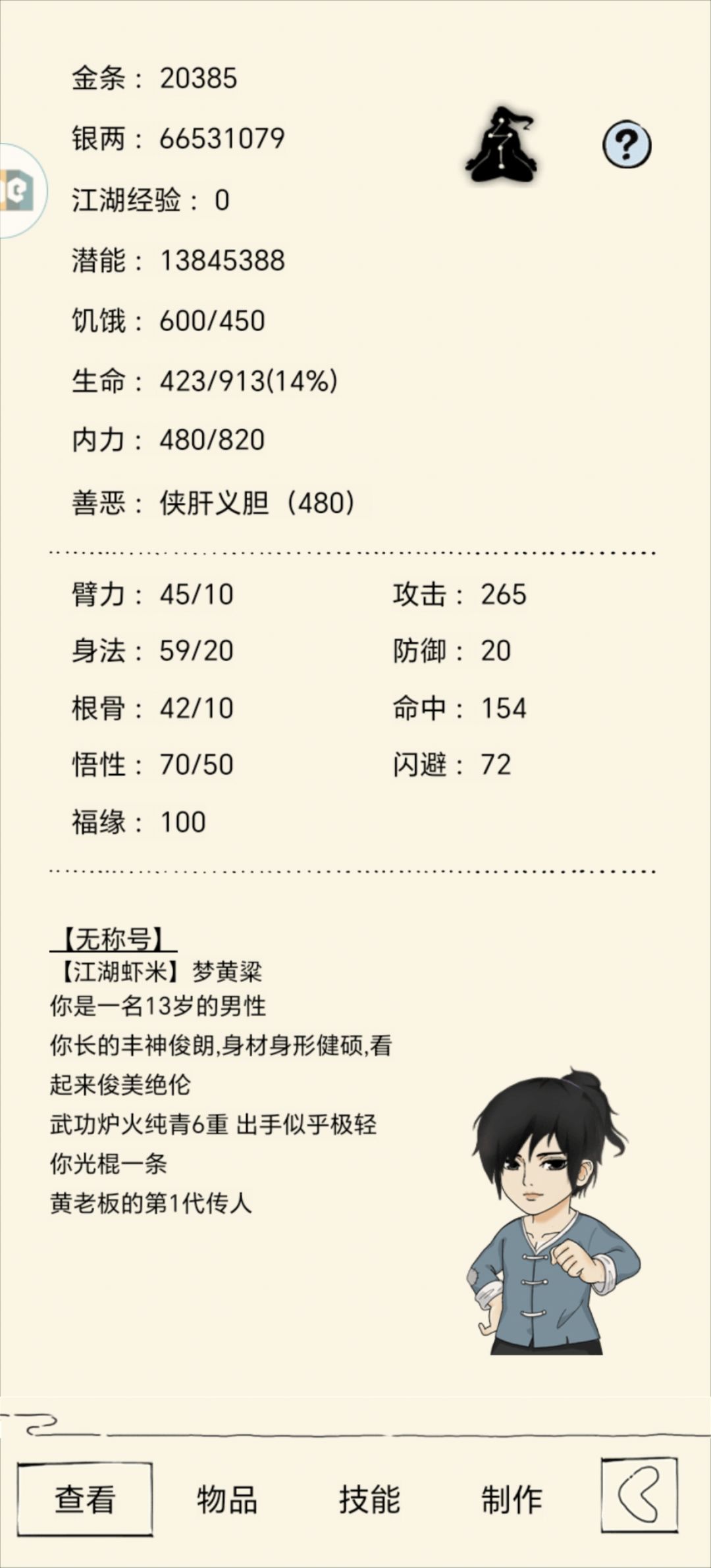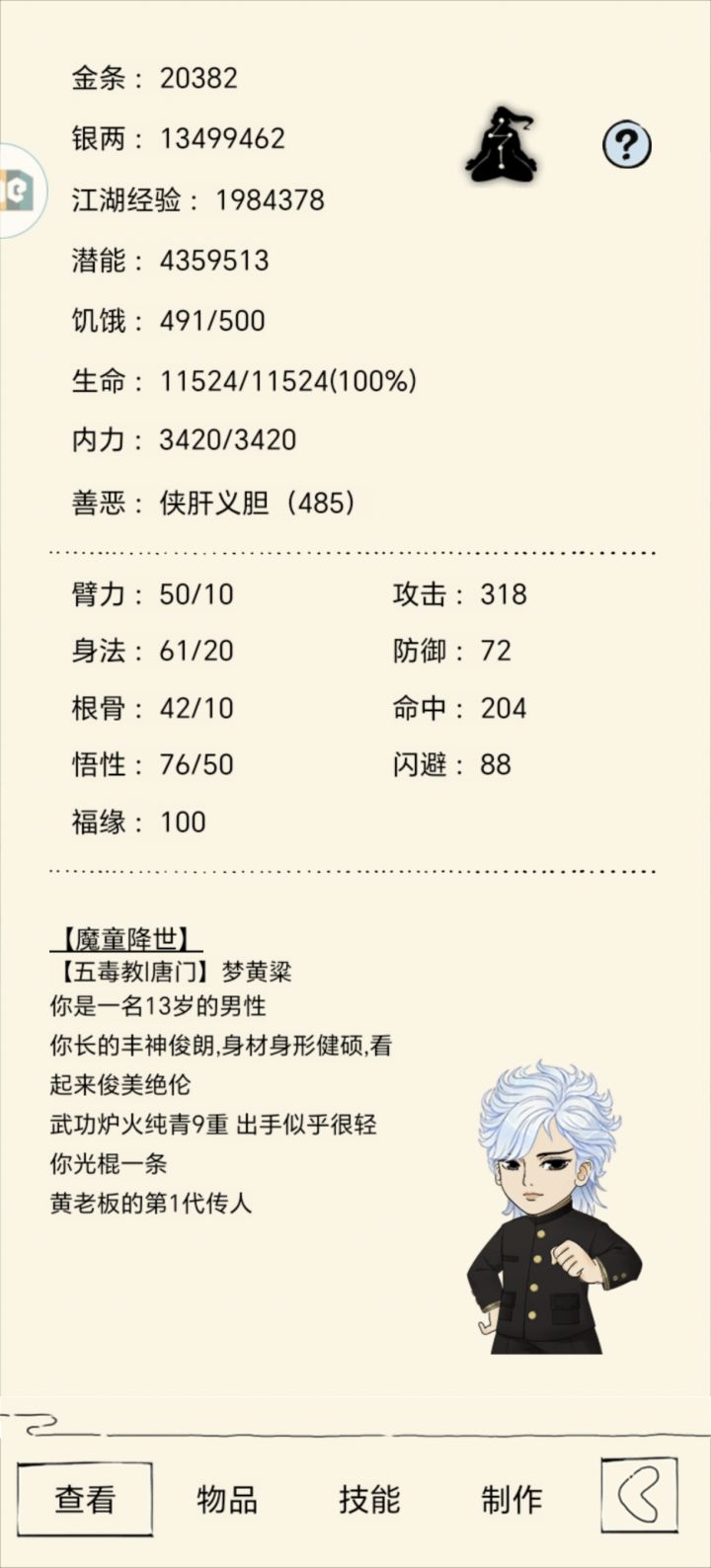2023.12.17轮回后三天恢复融汇,基础拳393,万毒手400,基础轻内200。下阶段把基础轻内升到250,穿上精英套,基础拳400,万毒手407转换真龙,基础轻内300,百毒300,出师雪山或者太极,拿到绝学就轮回。