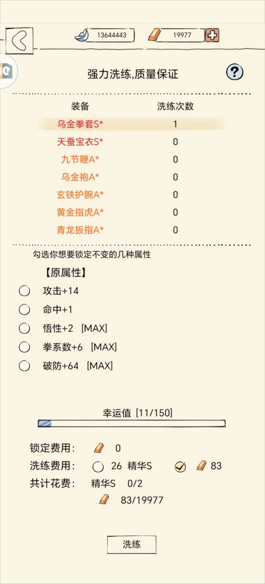[注意事项]:洗装备还是要看感觉,个人觉得和福源关系不大,和洗的时间有关,我满属性都是在差不多一个时间点出的,如果洗出满属性可以关注时间点,明天再这个时间点再洗,每天1—2次为宜。