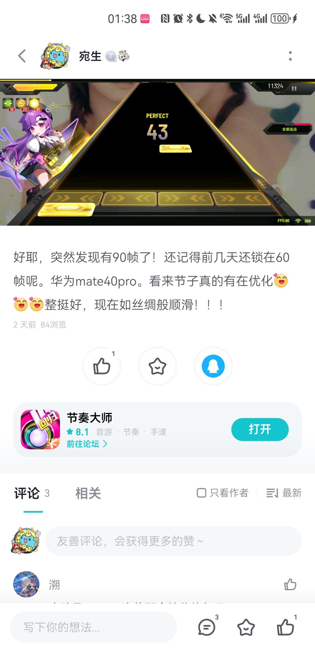 昨天还发帖说终于能有90帧,夸节子有在努力做优化。