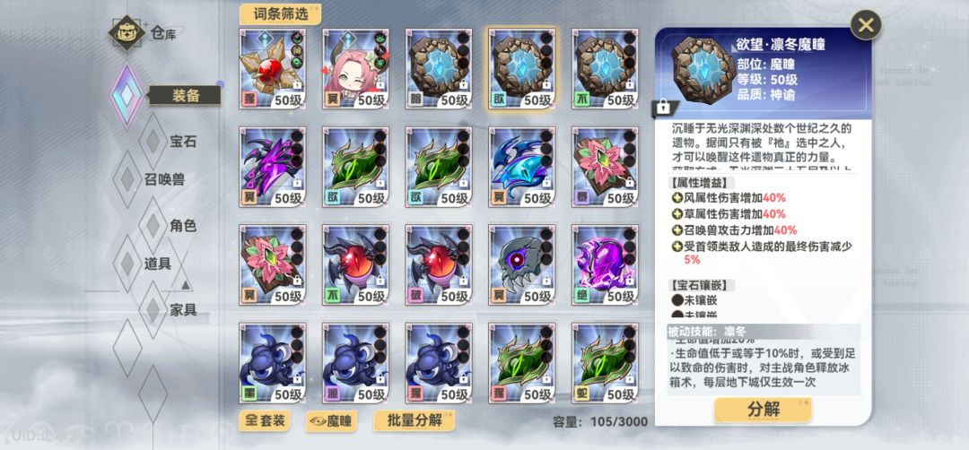 因此,凛冬魔瞳这种一次性的就不行,需要先祖宝石这种可以多次生效的。