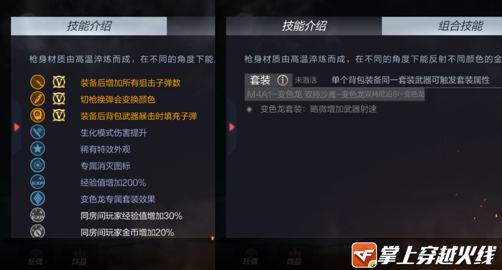 ◆巴雷特-变色龙在组成套装后射速略有提升,连镜速度由1.49秒缩短至1.46秒。