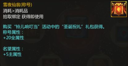 与此同时,还能获得一个换装同名称号—雪夜仙翁,能够为大家带来不错的属性加成!